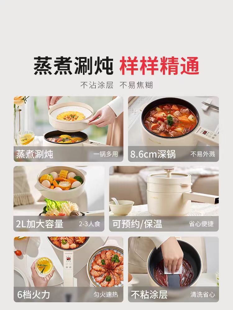 国货九阳电煮锅2L(带蒸笼)型号G186