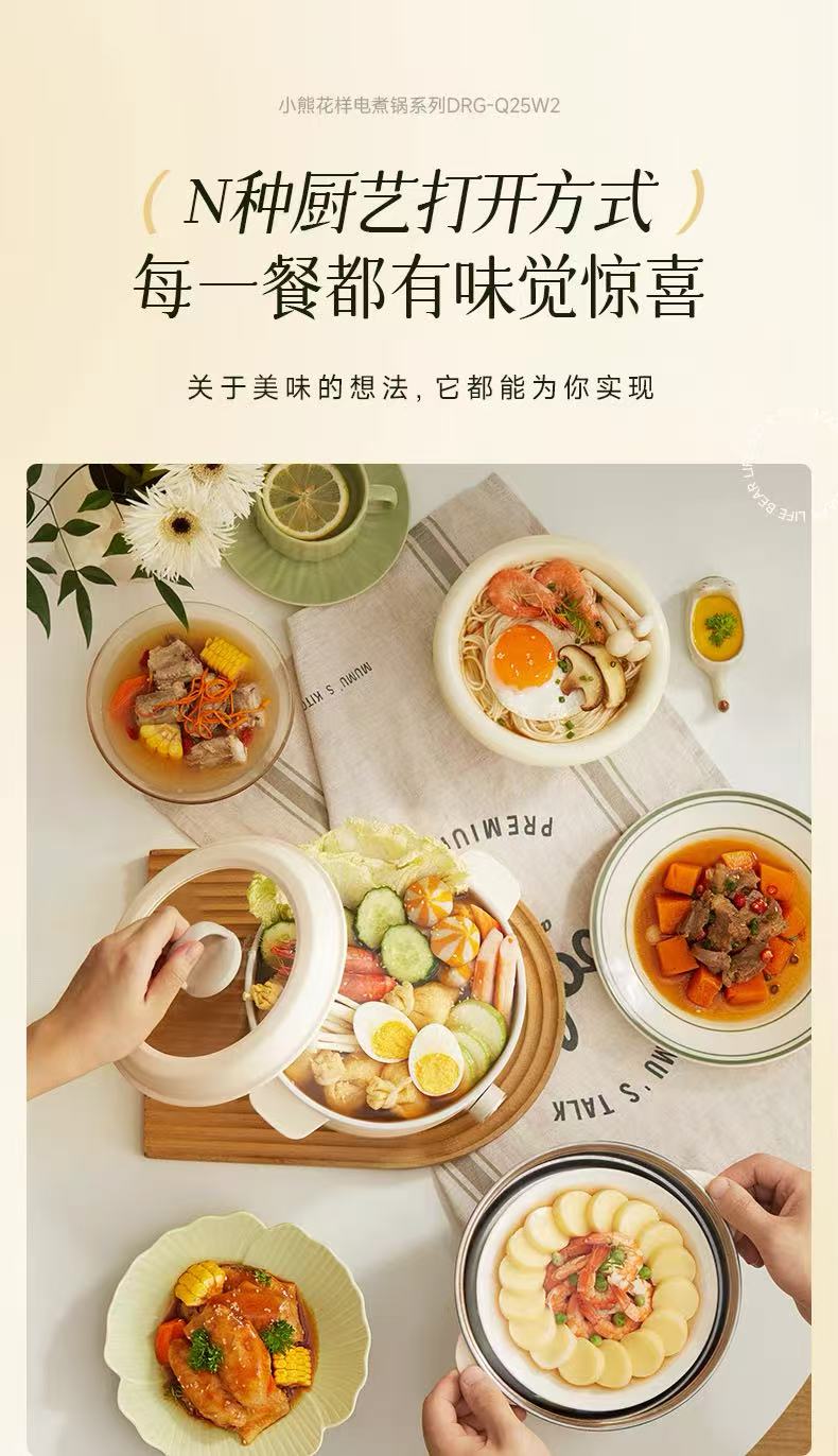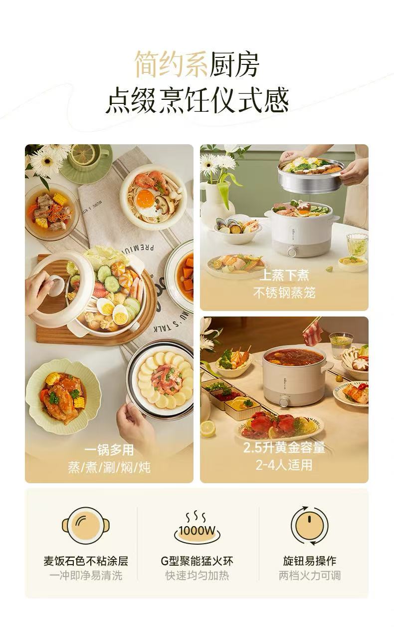 国货小熊电煮锅2.5L+不锈钢蒸笼 型号:DRG-Q25W2