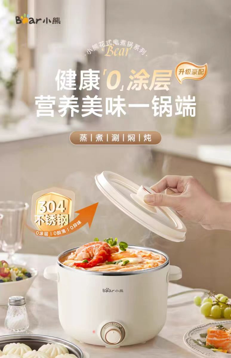 国货小熊304不锈钢电煮锅2.5L 带不锈钢蒸笼 DRG-E25P6