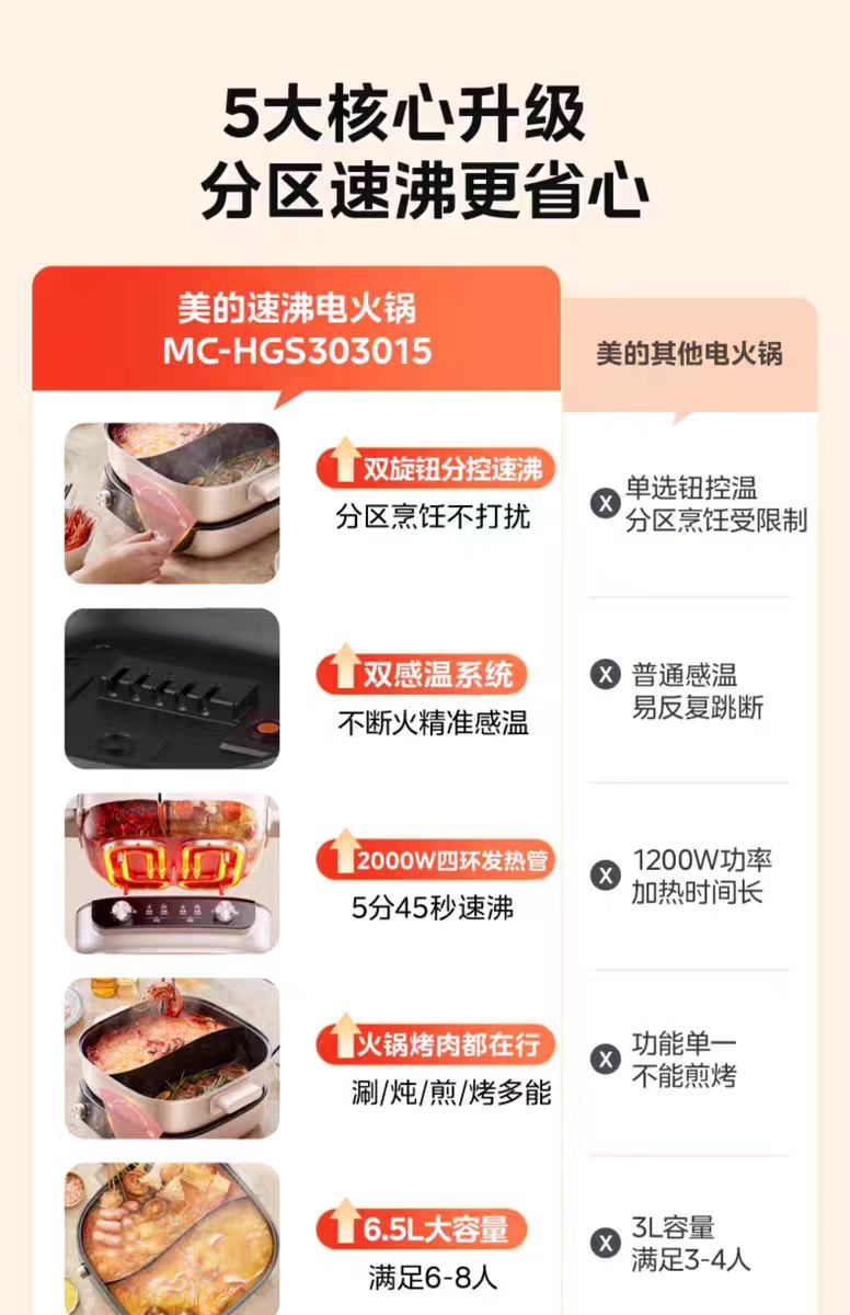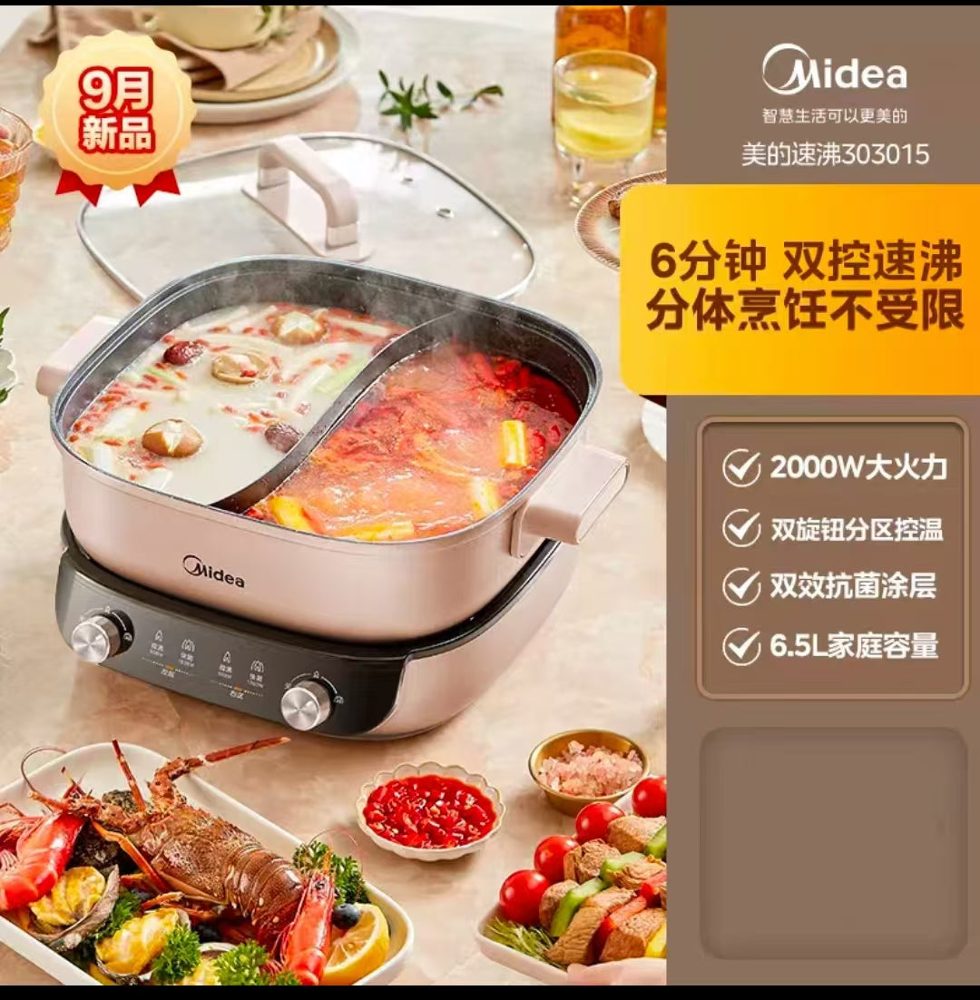 国货美的电火锅6.5L 型号:MC-HGS303015