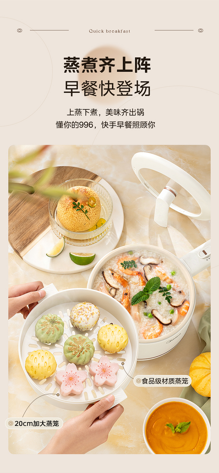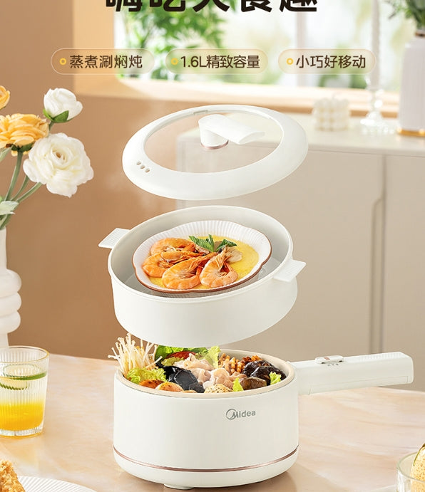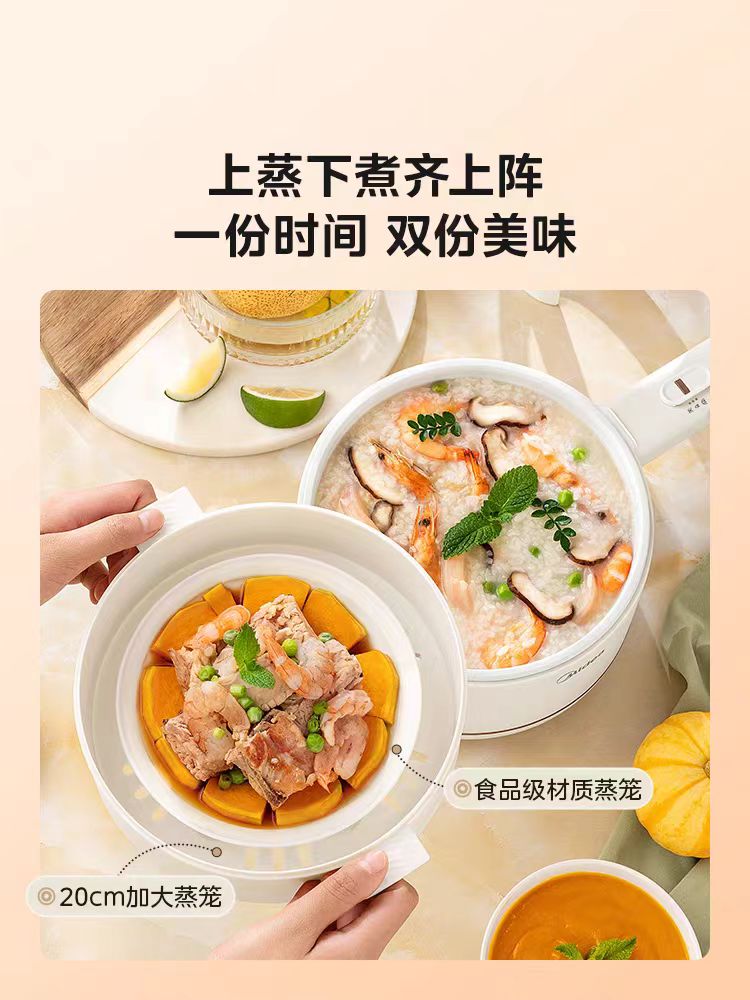 国货美的电煮锅 长手柄款(带蒸笼) 型号:XZE2017