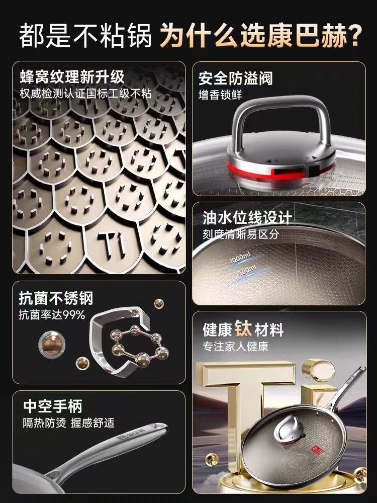 康巴赫高肽0氟蜂窝不粘炒锅32CM 型号KGF-C32N