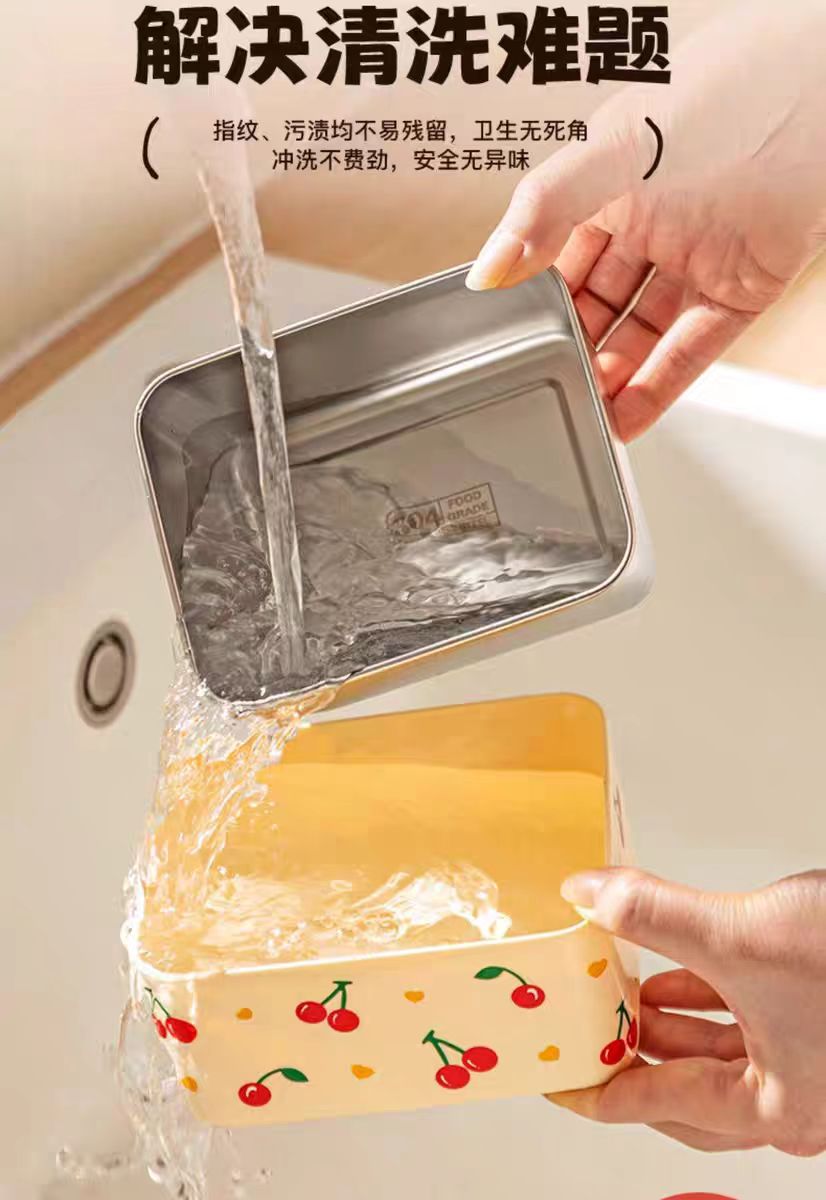 摩登主妇不锈钢保温饭盒 樱桃奶白700ml