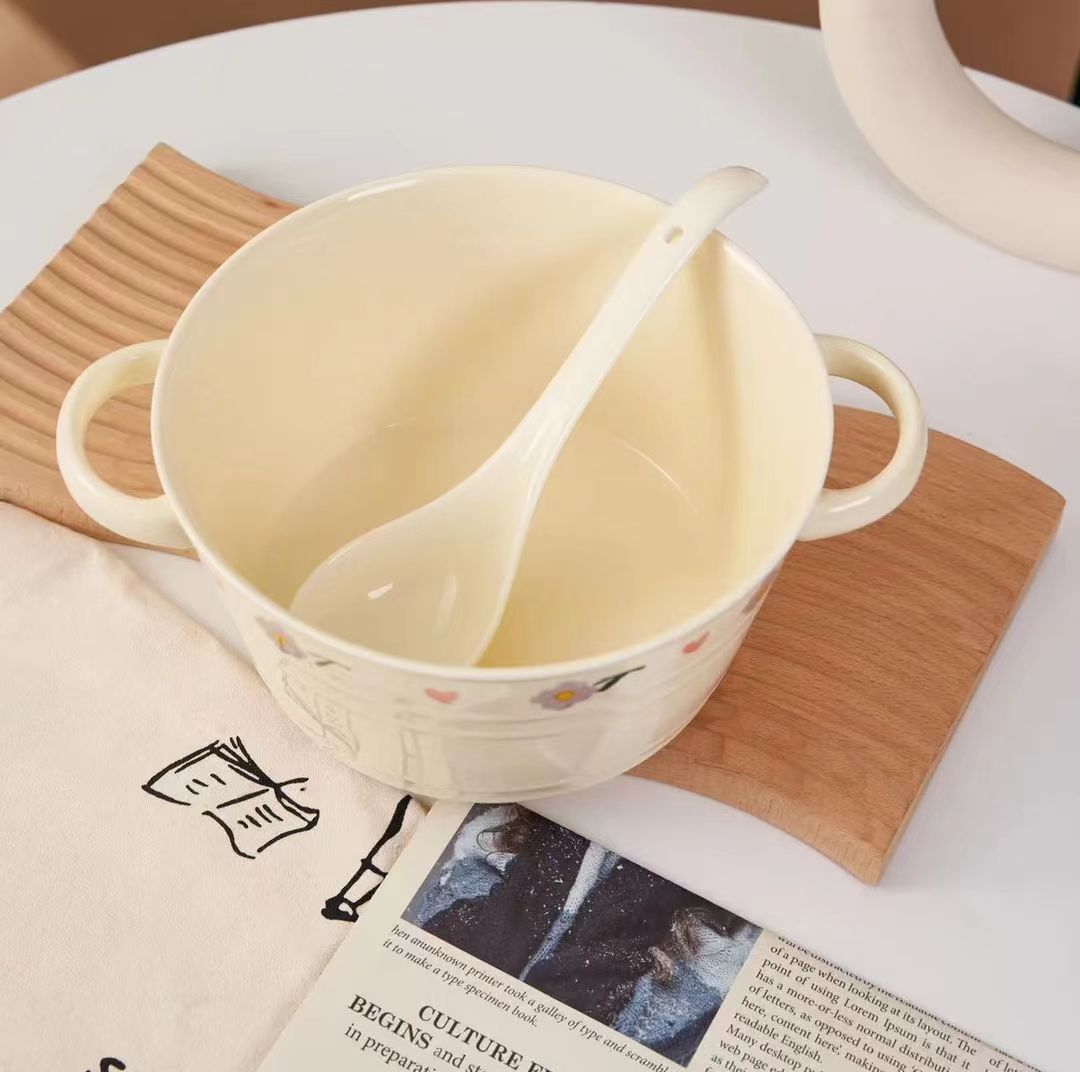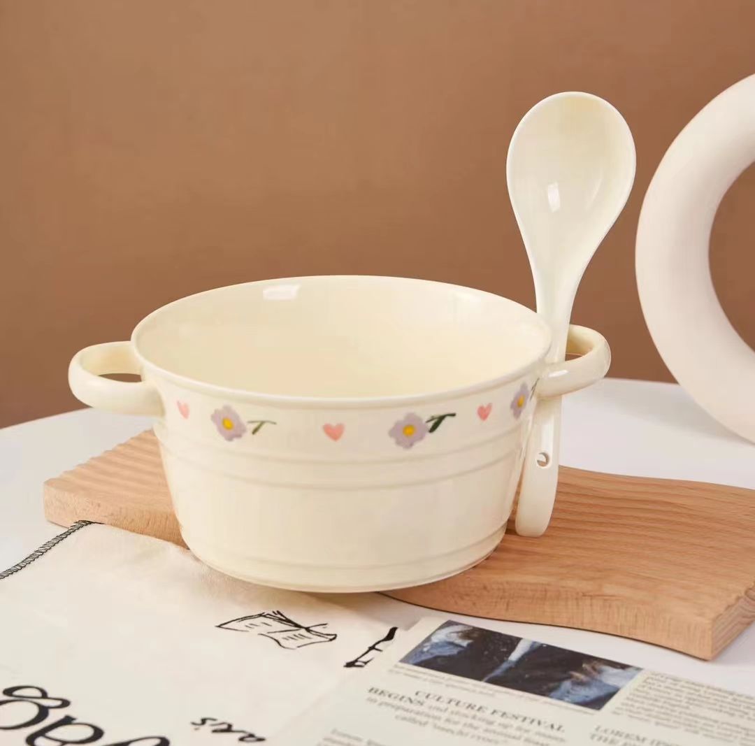 紫藤花双耳大汤碗+汤勺餐具套装
