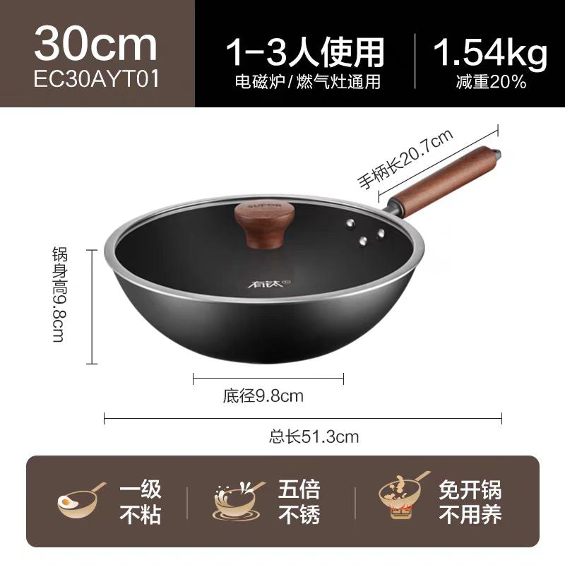 苏泊尔有钛无涂层铸铁炒锅不粘铁锅
